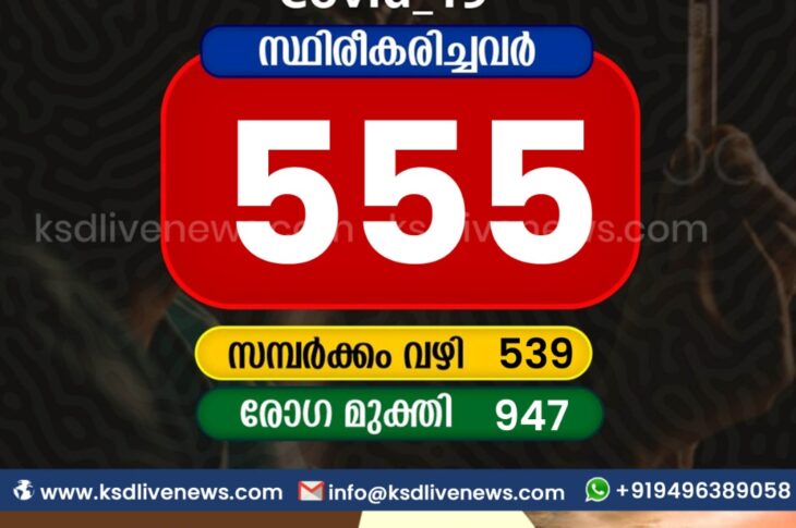 കാസർഗോഡ്കോവിഡ് 19 കാസർഗോഡ് ജില്ലയിൽ ഇന്ന് 555 പേർക്ക് കോവിഡ് സ്ഥിരീകരിച്ചു. സമ്പർക്കം വഴി 539 പേർക്കും. 947 പേർക്ക് രോഗമുക്തിMay 23, 2021