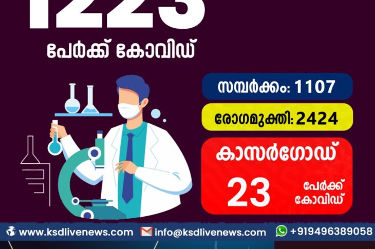 കേരളംകോവിഡ് 19 സംസ്ഥാനത്ത് ഇന്ന് 1223 കോവിഡ് സ്ഥിരീകരിച്ചു. സമ്പർക്കം വഴി 1107 പേർക്കും ; ആശ്വാസമായി 2424 പേർക്ക് രോഗമുക്തി ; കാസർഗോഡ് ജില്ലയിൽ 23 പേർക്ക് പുതിയ കോവിഡ് കേസുകൾ ; മരണം 04March 7, 2022