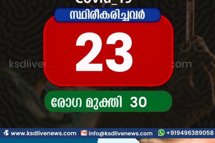 കാസർഗോഡ്കോവിഡ് 19 കാസർഗോഡ് ജില്ലയിൽ ഇന്ന് 23 പേർക്ക് കോവിഡ് സ്ഥിരീകരിച്ചു. 30 പേർക്ക് രോഗമുക്തിMarch 7, 2022
