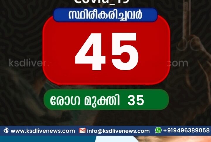 കാസർഗോഡ്കോവിഡ് 19 കാസർഗോഡ് ജില്ലയിൽ ഇന്ന് 45 പേർക്ക് കോവിഡ് സ്ഥിരീകരിച്ചു. 35 പേർക്ക് രോഗമുക്തിMarch 3, 2022