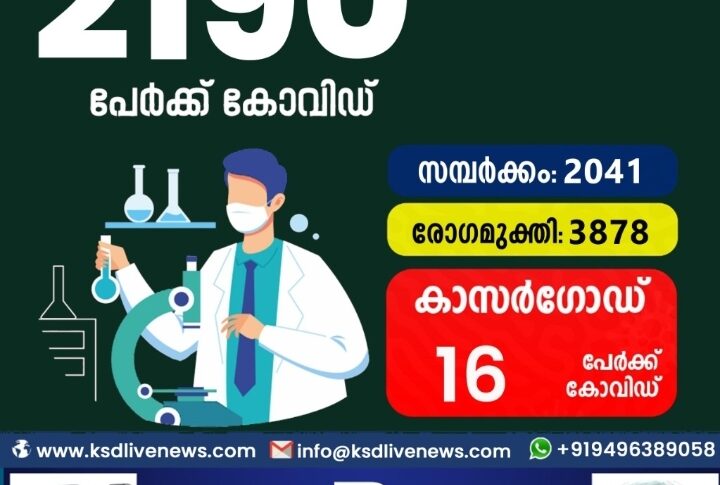 കേരളംകോവിഡ് 19 സംസ്ഥാനത്ത് ഇന്ന് 2190 കോവിഡ് സ്ഥിരീകരിച്ചു. സമ്പർക്കം വഴി 2041 പേർക്കും ; ആശ്വാസമായി 3878 പേർക്ക് രോഗമുക്തി ; കാസർഗോഡ് ജില്ലയിൽ 16 പേർക്ക് പുതിയ കോവിഡ് കേസുകൾ ; മരണം 03March 4, 2022