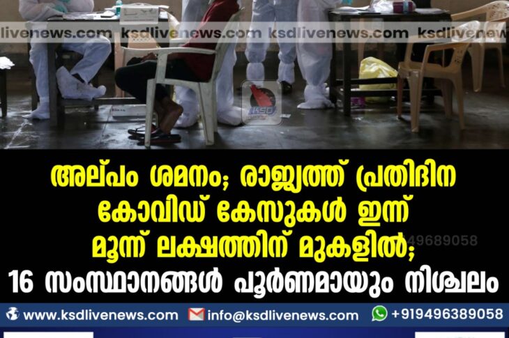 കോവിഡ് 19ദേശീയം അല്പം ശമനം; രാജ്യത്ത് പ്രതിദിന കോവിഡ് കേസുകള് ഇന്ന് മൂന്ന് ലക്ഷത്തിന് മുകളില്; 16 സംസ്ഥാനങ്ങള് പൂര്ണമായും നിശ്ചലംMay 10, 2021