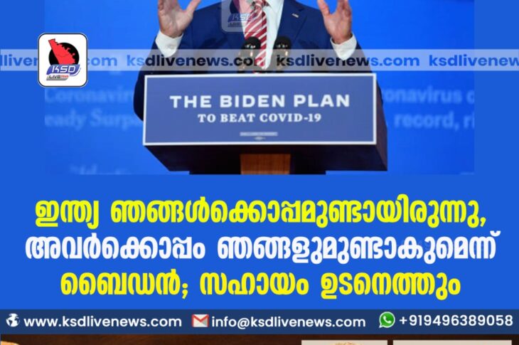 കോവിഡ് 19വിദേശം ഇന്ത്യഞങ്ങള്ക്കൊപ്പമുണ്ടായിരുന്നു, അവര്ക്കൊപ്പം ഞങ്ങളുമുണ്ടാകുമെന്ന് ബൈഡന്; സഹായം ഉടനെത്തുംApril 27, 2021