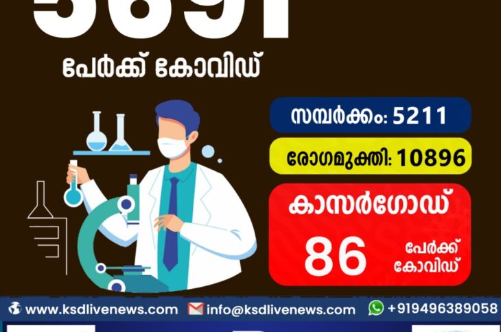 കേരളംകോവിഡ് 19 സംസ്ഥാനത്ത് ഇന്ന് 5691 കോവിഡ് സ്ഥിരീകരിച്ചു. സമ്പർക്കം വഴി 5211 പേർക്കും ; ആശ്വാസമായി 10896 പേർക്ക് രോഗമുക്തി ; കാസർഗോഡ് ജില്ലയിൽ 86 പേർക്ക് പുതിയ കോവിഡ് കേസുകൾ ; മരണം 10February 22, 2022