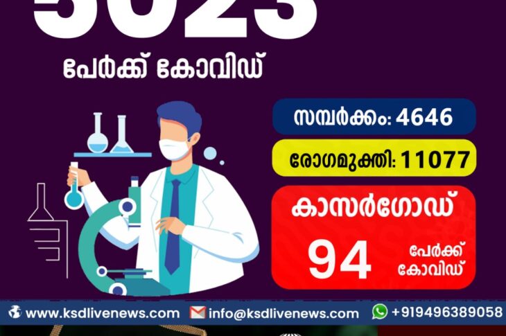 കേരളംകോവിഡ് 19 സംസ്ഥാനത്ത് ഇന്ന് 5023 കോവിഡ് സ്ഥിരീകരിച്ചു. സമ്പർക്കം വഴി 4646 പേർക്കും ; ആശ്വാസമായി 11077 പേർക്ക് രോഗമുക്തി ; കാസർഗോഡ് ജില്ലയിൽ 94 പേർക്ക് പുതിയ കോവിഡ് കേസുകൾ ; മരണം 13February 23, 2022