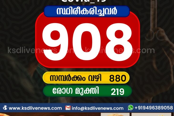 കാസർഗോഡ്കോവിഡ് 19 കുതിച്ചുയർന്ന് കോവിഡ് ; കാസർഗോഡ് ജില്ലയിൽ ഇന്ന് 908 പേർക്ക് കോവിഡ് സ്ഥിരീകരിച്ചു. സമ്പർക്കം വഴി 880 പേർക്കും. 219 പേർക്ക് രോഗമുക്തിApril 24, 2021