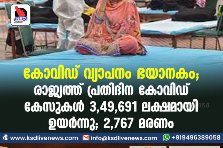കോവിഡ് 19ദേശീയം കോവിഡ് വ്യാപനം ഭയാനകം ;രാജ്യത്ത് പ്രതിദിന കോവിഡ് കേസുകൾ 3,49,691 ലക്ഷമായി ഉയർന്നു; 2,767 മരണംApril 25, 2021