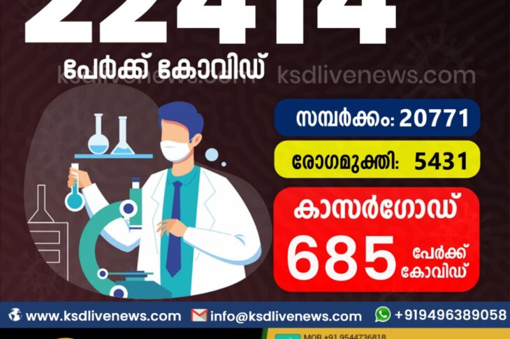 കോവിഡിൽ വിറച്ച് കേരളം ; സംസ്ഥാനത്ത് ഇന്ന് 22414 പേർക്ക് കോവിഡ് സ്ഥിരീകരിച്ചു. സമ്പർക്കം വഴി 20771 പേർക്കും ; ആശ്വാസമായി 5431 പേർക്ക് രോഗ മുക്തിയും ; കാസർഗോഡ് ജില്ലയിൽ 685 പേർക്ക് പുതിയ കോവിഡ് കേസുകൾ ; മരണം 22