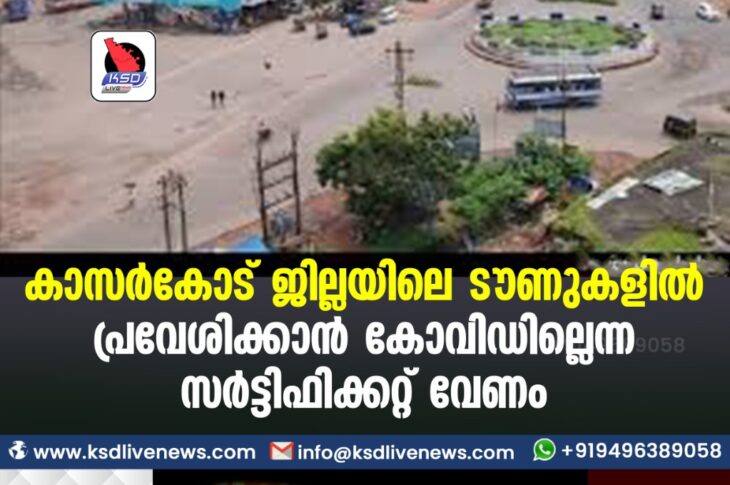 കാസർഗോഡ്കോവിഡ് 19 കാസർകോട് ജില്ലയിലെ ടൗണുകളിൽ പ്രവേശിക്കാൻ കോവിഡില്ലെന്ന സർട്ടിഫിക്കറ്റ് വേണംApril 17, 2021