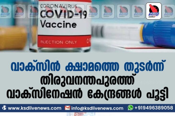 കേരളംകോവിഡ് 19 വാക്സിന് ക്ഷാമത്തെ തുടര്ന്ന് തിരുവനന്തപുരത്ത് വാക്സിനേഷന് കേന്ദ്രങ്ങള് പൂട്ടിApril 15, 2021