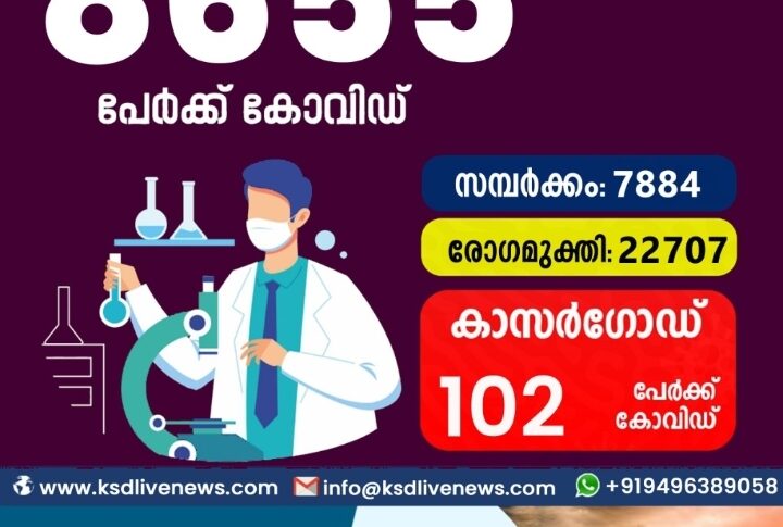 കേരളംകോവിഡ് 19 സംസ്ഥാനത്ത് ഇന്ന് 8655 കോവിഡ് സ്ഥിരീകരിച്ചു. സമ്പർക്കം വഴി 7884 പേർക്കും ; ആശ്വാസമായി 22707 പേർക്ക് രോഗമുക്തി ; കാസർഗോഡ് ജില്ലയിൽ 102 പേർക്ക് പുതിയ കോവിഡ് കേസുകൾ ; മരണം 18February 17, 2022