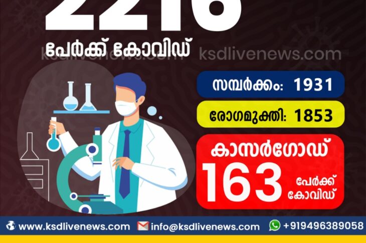 കേരളംകോവിഡ് 19 സംസ്ഥാനത്ത് ഇന്ന് 2216 പേർക്ക് കോവിഡ് സ്ഥിരീകരിച്ചു. സമ്പർക്കം വഴി 1931 പേർക്കും ; ആശ്വാസമായി 1853 പേർക്ക് രോഗ മുക്തിയും ; കാസർഗോഡ് ജില്ലയിൽ 163 പേർക്ക് പുതിയ കോവിഡ് കേസുകൾ ; മരണം 12March 28, 2021