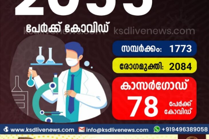 കേരളംകോവിഡ് 19 സംസ്ഥാനത്ത് ഇന്ന് 2055 പേർക്ക് കോവിഡ് സ്ഥിരീകരിച്ചു. സമ്പർക്കം വഴി 1774 പേർക്കും ; ആശ്വാസമായി 2084 പേർക്ക് രോഗ മുക്തിയും ; കാസർഗോഡ് ജില്ലയിൽ 78 പേർക്ക് പുതിയ കോവിഡ് കേസുകൾ ; മരണം 14March 27, 2021