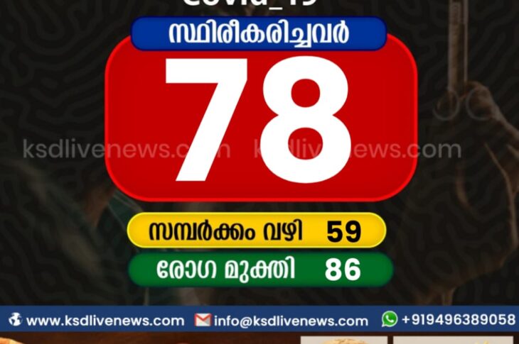 കാസർഗോഡ്കോവിഡ് 19 കാസർഗോഡ് ജില്ലയിൽ ഇന്ന് 78 പേർക്ക് കോവിഡ് സ്ഥിരീകരിച്ചു. സമ്പർക്കം വഴി 59 പേർക്കും. 86 പേർക്ക് രോഗമുക്തിMarch 27, 2021