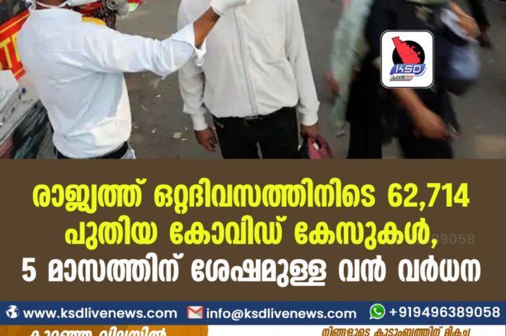 കോവിഡ് 19ദേശീയം രാജ്യത്ത് ഒറ്റദിവസത്തിനിടെ 62,714 പുതിയ കോവിഡ് കേസുകള്, 5 മാസത്തിന് ശേഷമുള്ള വന് വര്ധനMarch 28, 2021