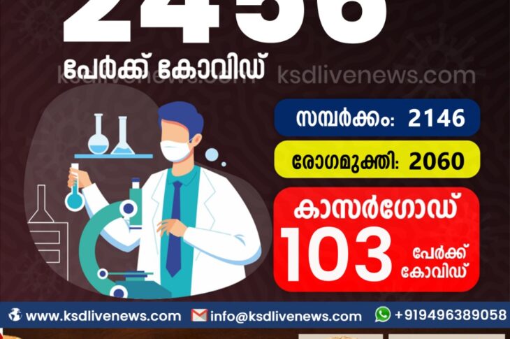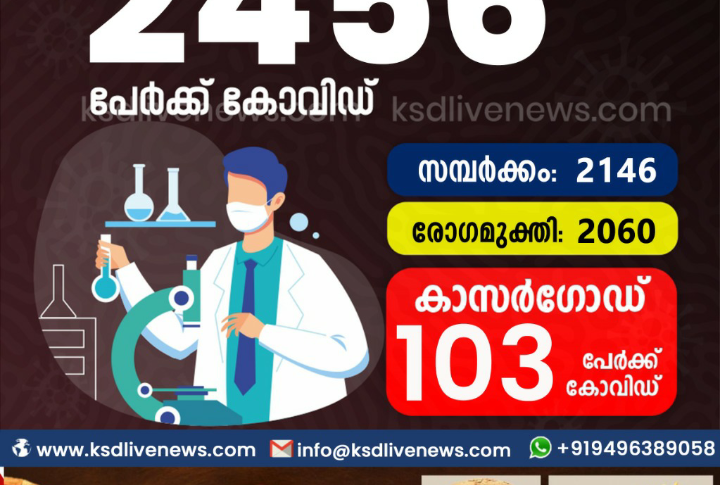 കേരളംകോവിഡ് 19 സംസ്ഥാനത്ത് ഇന്ന് 2456 പേർക്ക് കോവിഡ് സ്ഥിരീകരിച്ചു. സമ്പർക്കം വഴി 2146 പേർക്കും ; ആശ്വാസമായി 2060 പേർക്ക് രോഗ മുക്തിയും ; കാസർഗോഡ് ജില്ലയിൽ 103 പേർക്ക് പുതിയ കോവിഡ് കേസുകൾ ; മരണം 10March 24, 2021