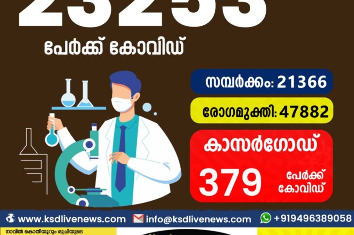 കേരളംകോവിഡ് 19 സംസ്ഥാനത്ത് ഇന്ന് 23,253 കോവിഡ് സ്ഥിരീകരിച്ചു. സമ്പർക്കം വഴി 21366 പേർക്കും ; ആശ്വാസമായി 47882 പേർക്ക് രോഗമുക്തി ; കാസർഗോഡ് ജില്ലയിൽ 379 പേർക്ക് പുതിയ കോവിഡ് കേസുകൾ ; മരണം 29February 9, 2022