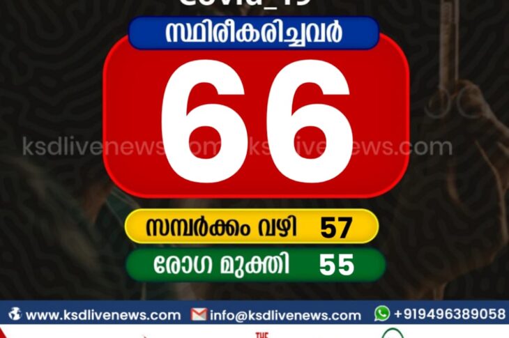 കാസർഗോഡ്കോവിഡ് 19 കാസർഗോഡ് ജില്ലയിൽ ഇന്ന് 66 പേർക്ക് കോവിഡ് സ്ഥിരീകരിച്ചു. സമ്പർക്കം വഴി 57 പേർക്കും. 55 പേർക്ക് രോഗമുക്തിMarch 12, 2021