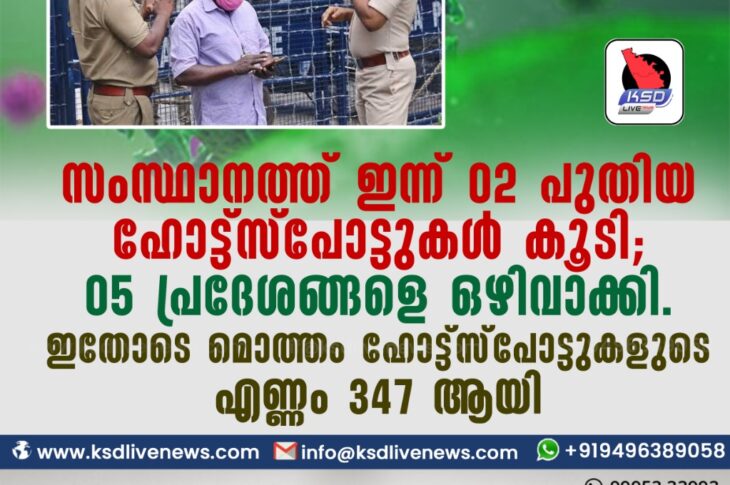കേരളംകോവിഡ് 19 സംസ്ഥാനത്ത് ഇന്ന് 02 പുതിയ ഹോട്ട്സ്പോട്ടുകള് കൂടി; 06 പ്രദേശങ്ങളെ ഒഴിവാക്കി. ഇതോടെ മൊത്തം ഹോട്ട്സ്പോട്ടുകളുടെ എണ്ണം 347 ആയി.March 11, 2021