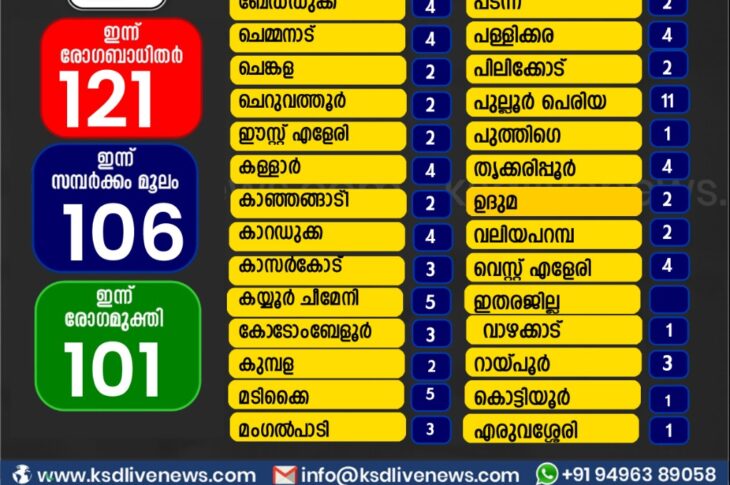 കാസർഗോഡ്കോവിഡ് 19 കാസർഗോഡ് ജില്ലയിൽ ഇന്ന് കോവിഡ് സ്ഥിരീകരിച്ചവരുടെ പഞ്ചായത്ത് തിരിച്ചുള്ള സ്ഥിതി വിവര കണക്ക്March 10, 2021