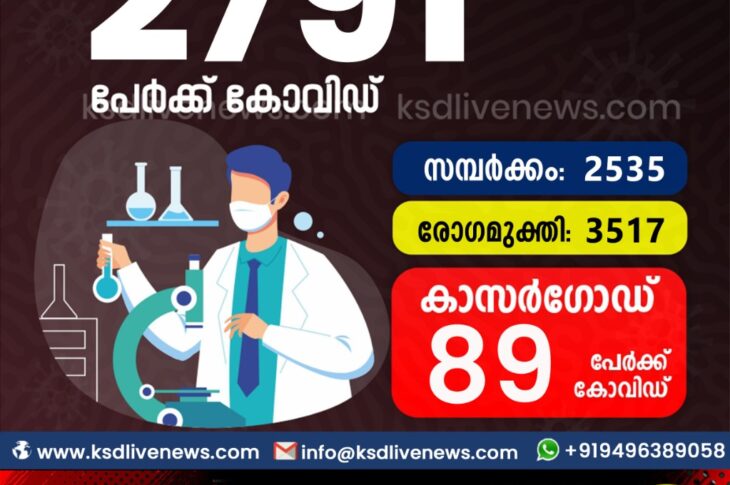 കേരളംകോവിഡ് 19 സംസ്ഥാനത്ത് ഇന്ന് 2791 പേർക്ക് കോവിഡ് സ്ഥിരീകരിച്ചു. സമ്പർക്കം വഴി 2535 പേർക്കും ; ആശ്വാസമായി 3517 പേർക്ക് രോഗ മുക്തിയും ; കാസർഗോഡ് ജില്ലയിൽ 89 പേർക്ക് പുതിയ കോവിഡ് കേസുകൾ ; മരണം 16March 6, 2021