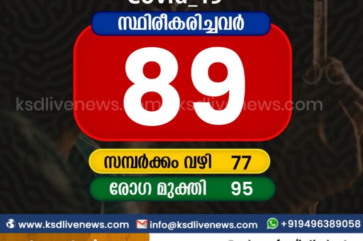 കാസർഗോഡ്കോവിഡ് 19 കാസർഗോഡ് ജില്ലയിൽ ഇന്ന് 89 പേർക്ക് കോവിഡ് സ്ഥിരീകരിച്ചു. സമ്പർക്കം വഴി 77 പേർക്കും. 95 പേർക്ക് രോഗമുക്തിMarch 6, 2021
