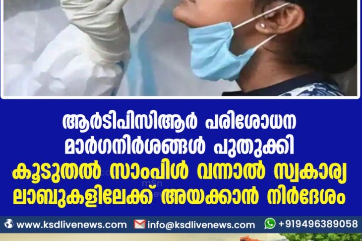 കോവിഡ് 19ദേശീയം ആർടിപിസിആർ പരിശോധന ; മാർഗനിർശങ്ങൾ പുതുക്കി ; കൂടുതൽ സാംപിൾ വന്നാൽ സ്വകാര്യ ലാബുകളിലേക്ക് അയക്കാൻ നിർദേശംMarch 1, 2021