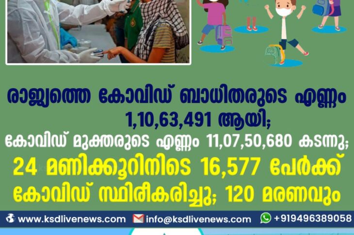 കോവിഡ് 19ദേശീയം രാജ്യത്തെ കോവിഡ് ബാധിതരുടെ എണ്ണം 1,10,63,491 കടന്നു ; കോവിഡ് മുക്തരുടെ എണ്ണം 1,07,50,680 ആയി;24 മണിക്കൂറിനിടെ 16,577 പേർക്ക് കോവിഡ് സ്ഥിരീകരിച്ചു ; 120 മരണവുംFebruary 26, 2021