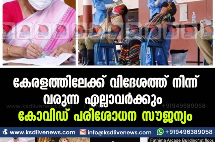 കേരളംകോവിഡ് 19 കേരളത്തിലേക്ക് വിദേശത്ത് നിന്ന് വരുന്ന എല്ലാവർക്കും കൊവിഡ് പരിശോധന സൗജന്യം…February 26, 2021