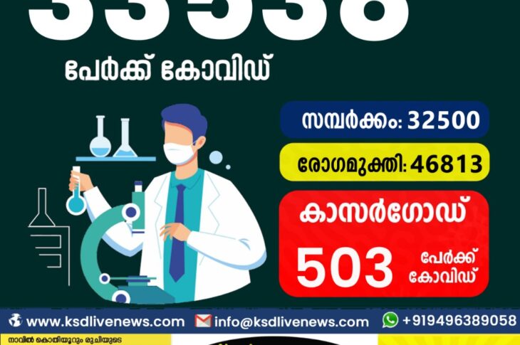 കേരളംകോവിഡ് 19 സംസ്ഥാനത്ത് ഇന്ന് 33538 കോവിഡ് സ്ഥിരീകരിച്ചു. സമ്പർക്കം വഴി 32500 പേർക്കും ; ആശ്വാസമായി 46813 പേർക്ക് രോഗമുക്തി ; കാസർഗോഡ് ജില്ലയിൽ 503 പേർക്ക് പുതിയ കോവിഡ് കേസുകൾ ; മരണം 22February 5, 2022