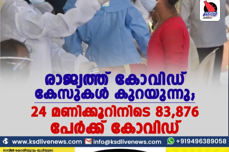 കോവിഡ് 19ദേശീയം രാജ്യത്ത് കോവിഡ് കേസുകള് കുറയുന്നു; 24 മണിക്കൂറിനിടെ 83,876 പേർക്ക് കോവിഡ്February 7, 2022