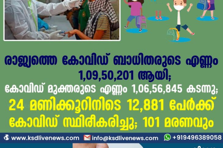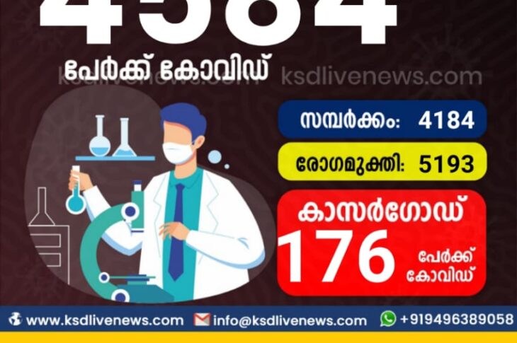 സംസ്ഥാനത്ത് ഇന്ന് 4584 പേർക്ക് കോവിഡ് സ്ഥിരീകരിച്ചു. സമ്പർക്കം വഴി 4184 പേർക്കും ; ആശ്വാസമായി 5193 പേർക്ക് രോഗ മുക്തിയും ; കാസർഗോഡ് ജില്ലയിൽ 176 പേർക്ക് പുതിയ കോവിഡ് കേസുകൾ ; മരണം 19