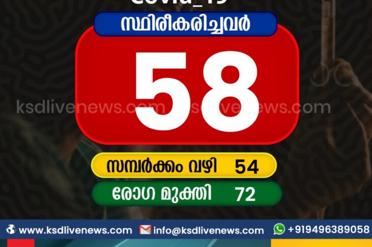 കാസർഗോഡ്കോവിഡ് 19 കാസർഗോഡ് ജില്ലയിൽ ഇന്ന് 58 പേർക്ക് കോവിഡ് സ്ഥിരീകരിച്ചു. സമ്പർക്കം വഴി 54 പേർക്കും. 72 പേർക്ക് രോഗമുക്തിJanuary 12, 2021