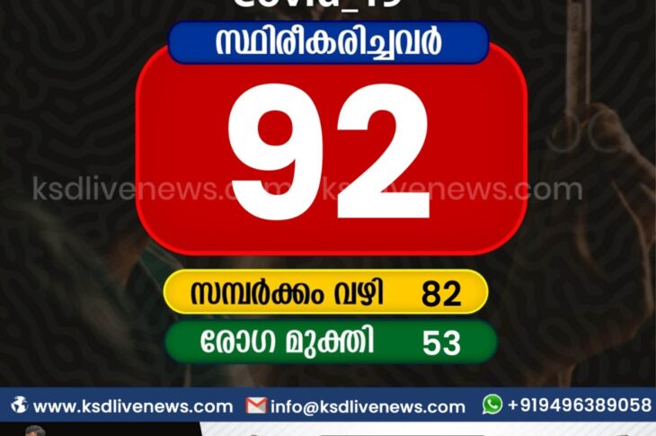 കാസർഗോഡ്കോവിഡ് 19 കാസർഗോഡ് ജില്ലയിൽ ഇന്ന് 92 പേർക്ക് കോവിഡ് സ്ഥിരീകരിച്ചു. സമ്പർക്കം വഴി 82 പേർക്കും. 53 പേർക്ക് രോഗമുക്തിDecember 17, 2020