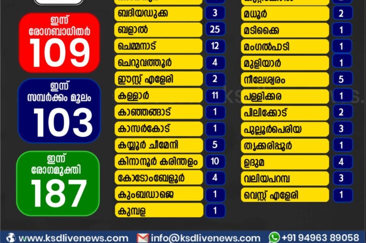 കാസർഗോഡ്കോവിഡ് 19 കാസർഗോഡ് ജില്ലയിൽ ഇന്ന് കോവിഡ് പോസിറ്റീവായവരുടെ പഞ്ചായത്ത് തിരിച്ചുള്ള സ്ഥിതി വിവര കണക്ക്November 18, 2020