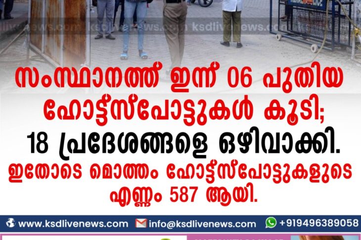 കേരളംകോവിഡ് 19 സംസ്ഥാനത്ത് ഇന്ന് 06 പുതിയ ഹോട്ട്സ്പോട്ടുകള് കൂടി; 18 പ്രദേശങ്ങളെ ഒഴിവാക്കി. ഇതോടെ മൊത്തം ഹോട്ട്സ്പോട്ടുകളുടെ എണ്ണം 587 ആയി.November 18, 2020