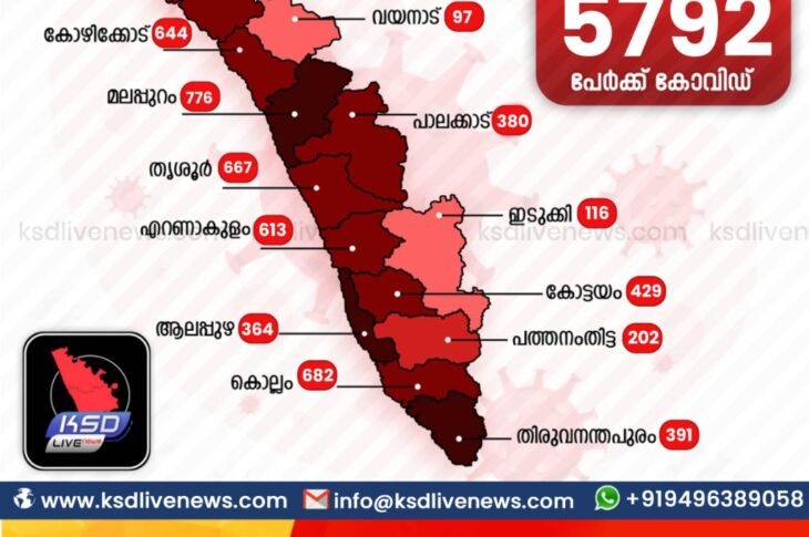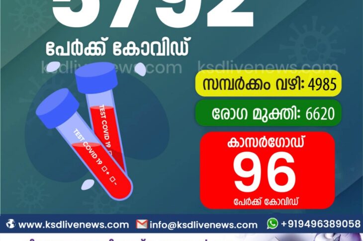 കേരളംകോവിഡ് 19 സംസ്ഥാനത്ത് ഇന്ന് 5792 പേർക്ക് കോവിഡ് സ്ഥിരീകരിച്ചു. സമ്പർക്കം വഴി 4985 പേർക്കും ; ആശ്വാസമായി 6620 പേർക്ക് രോഗ മുക്തിയും ; കാസർഗോഡ് ജില്ലയിൽ 96 പേർക്ക് പുതിയ കോവിഡ് കേസുകൾ ; മരണം 27November 17, 2020