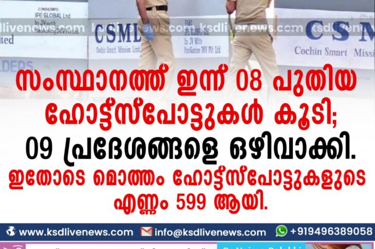 കേരളംകോവിഡ് 19 സംസ്ഥാനത്ത് ഇന്ന് 08 പുതിയ ഹോട്ട്സ്പോട്ടുകള് കൂടി; 09 പ്രദേശങ്ങളെ ഒഴിവാക്കി. ഇതോടെ മൊത്തം ഹോട്ട്സ്പോട്ടുകളുടെ എണ്ണം 599 ആയി.November 17, 2020
