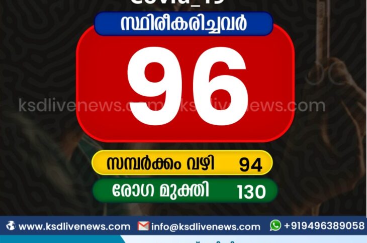 കാസർഗോഡ്കോവിഡ് 19 കാസർഗോഡ് ജില്ലയിൽ ഇന്ന് 96 പേർക്ക് കോവിഡ് സ്ഥിരീകരിച്ചു. സമ്പർക്കം വഴി 94 പേർക്കും. 130 പേർക്ക് രോഗമുക്തിNovember 17, 2020