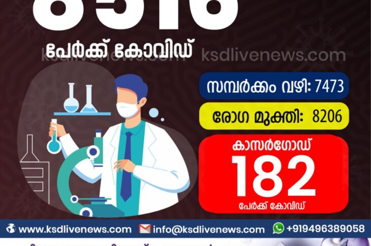 കേരളംകോവിഡ് 19 സംസ്ഥാനത്ത് ഇന്ന് 8516 പേർക്ക് കോവിഡ് സ്ഥിരീകരിച്ചു. സമ്പർക്കം വഴി 7473 പേർക്കും ; ആശ്വാസമായി 8206 പേർക്ക് രോഗ മുക്തിയും ; കാസർഗോഡ് ജില്ലയിൽ 182 പേർക്ക് പുതിയ കോവിഡ് കേസുകൾ ; മരണം 27November 4, 2020