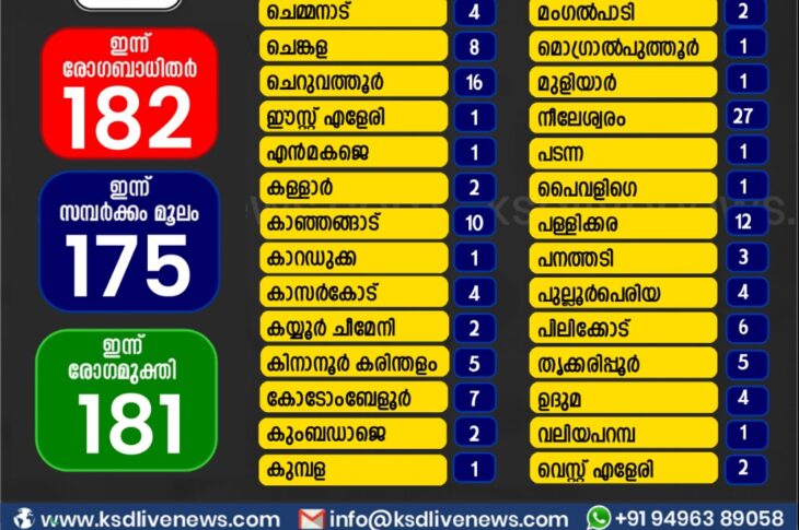 കാസർഗോഡ്കോവിഡ് 19 കാസർഗോഡ് ജില്ലയിൽ ഇന്ന് കോവിഡ് പോസിറ്റീവായവരുടെ പഞ്ചായത്ത് തിരിച്ചുള്ള സ്ഥിതി വിവര കണക്ക്November 4, 2020