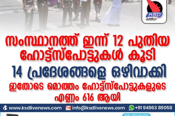കേരളംകോവിഡ് 19 സംസ്ഥാനത്ത് ഇന്ന് 12 പുതിയ ഹോട്ട്സ്പോട്ടുകള് കൂടി; 14 പ്രദേശങ്ങളെ ഒഴിവാക്കി.ഇതോടെ മൊത്തം ഹോട്ട്സ്പോട്ടുകളുടെ എണ്ണം 616 ആയി.October 23, 2020