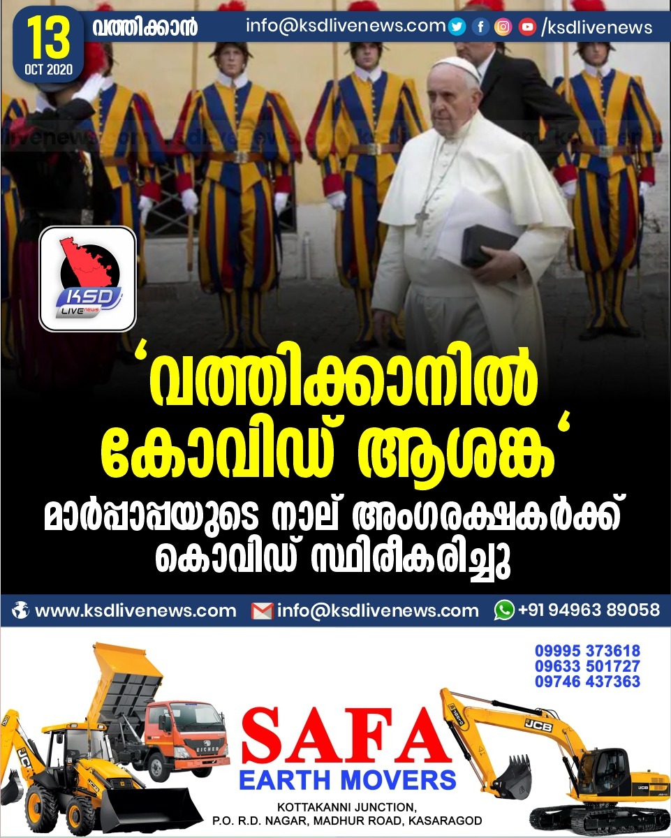 കോവിഡ് 19വിദേശം ” വത്തിക്കാനിൽ കോവിഡ് ആശങ്ക ” ; മാർപ്പാപ്പയുടെ നാല് അംഗരക്ഷകർക്ക് കൊവിഡ് സ്ഥിരീകരിച്ചുOctober 13, 2020