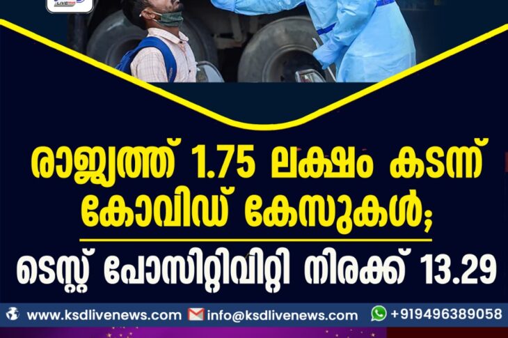 കോവിഡ് 19ദേശീയം രാജ്യത്ത് 1.75 ലക്ഷം കടന്ന് കോവിഡ് കേസുകള്: ടെസ്റ്റ് പോസിറ്റിവിറ്റി നിരക്ക് 13.29January 10, 2022