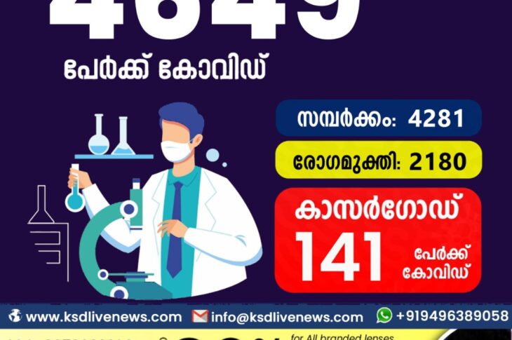 കേരളംകോവിഡ് 19 സംസ്ഥാനത്ത് ഇന്ന് 4649 പേർക്ക് കോവിഡ് സ്ഥിരീകരിച്ചു. സമ്പർക്കം വഴി 4281 പേർക്കും ; ആശ്വാസമായി 2180 പേർക്ക് രോഗ മുക്തിയും ; കാസർഗോഡ് ജില്ലയിൽ 141 പേർക്ക് പുതിയ കോവിഡ് കേസുകൾ ; മരണം 17January 6, 2022