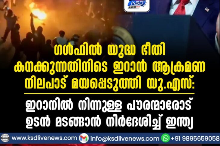 ഗൾഫ് ഗൾഫിൽ യുദ്ധ ഭീതി കനക്കുന്നതിനിടെ ഇറാൻ ആക്രമണ നിലപാട് മയപ്പെടുത്തി യുഎസ്; ഇറാനിൽ നിന്നുള്ള പൗരന്മാരോട് ഉടൻ മടങ്ങാൻ നിർദേശിച്ച് ഇന്ത്യJanuary 15, 2026