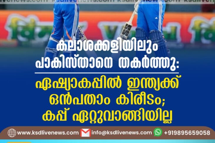 ഗൾഫ് കലാശക്കളിയിലും പാകിസ്താനെ തകർത്തു: ഏഷ്യാകപ്പിൽ ഇന്ത്യക്ക് ഒൻപതാം കിരീടം; കപ്പ് ഏറ്റുവാങ്ങിയില്ലSeptember 29, 2025