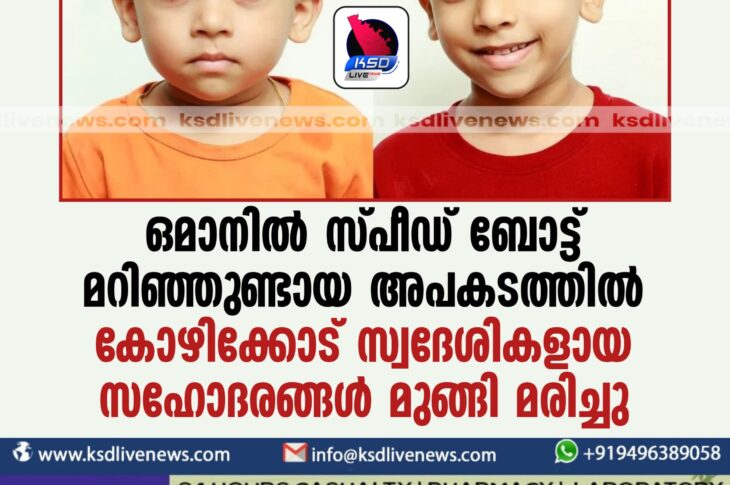ഗൾഫ് ഒമാനില് സ്പീഡ് ബോട്ട് മറിഞ്ഞുണ്ടായ അപകടത്തില് കോഴിക്കോട് സ്വദേശികളായ സഹോദരങ്ങള് മുങ്ങിമരിച്ചുApril 13, 2024