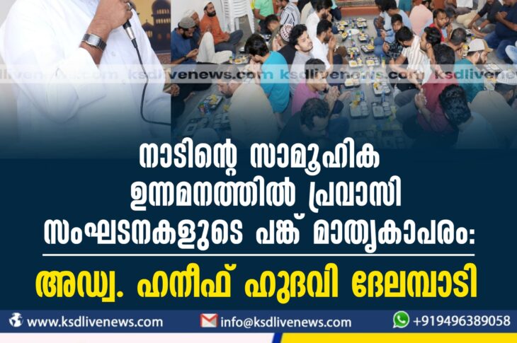 ഗൾഫ് നാടിന്റെ സാമൂഹിക ഉന്നമനത്തിൽ പ്രവാസി സംഘടനകളുടെ പങ്ക് മാതൃകാപരം: അഡ്വ. ഹനീഫ് ഹുദവി ദേലമ്പാടിApril 3, 2024