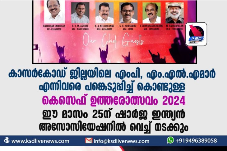 ഗൾഫ് കാസർകോഡ് ജില്ലയിലെ എംപി, എം എൽ എമാർ എന്നിവരെ പങ്കെടുപ്പിച്ച് കൊണ്ടുള്ള കെസെഫ് ഉത്തരോത്സവം 2024 ഈ മാസം 25ന് ഷാർജ ഇന്ത്യൻ അസോസിയേഷനിൽ വെച്ച് നടക്കുംFebruary 23, 2024
